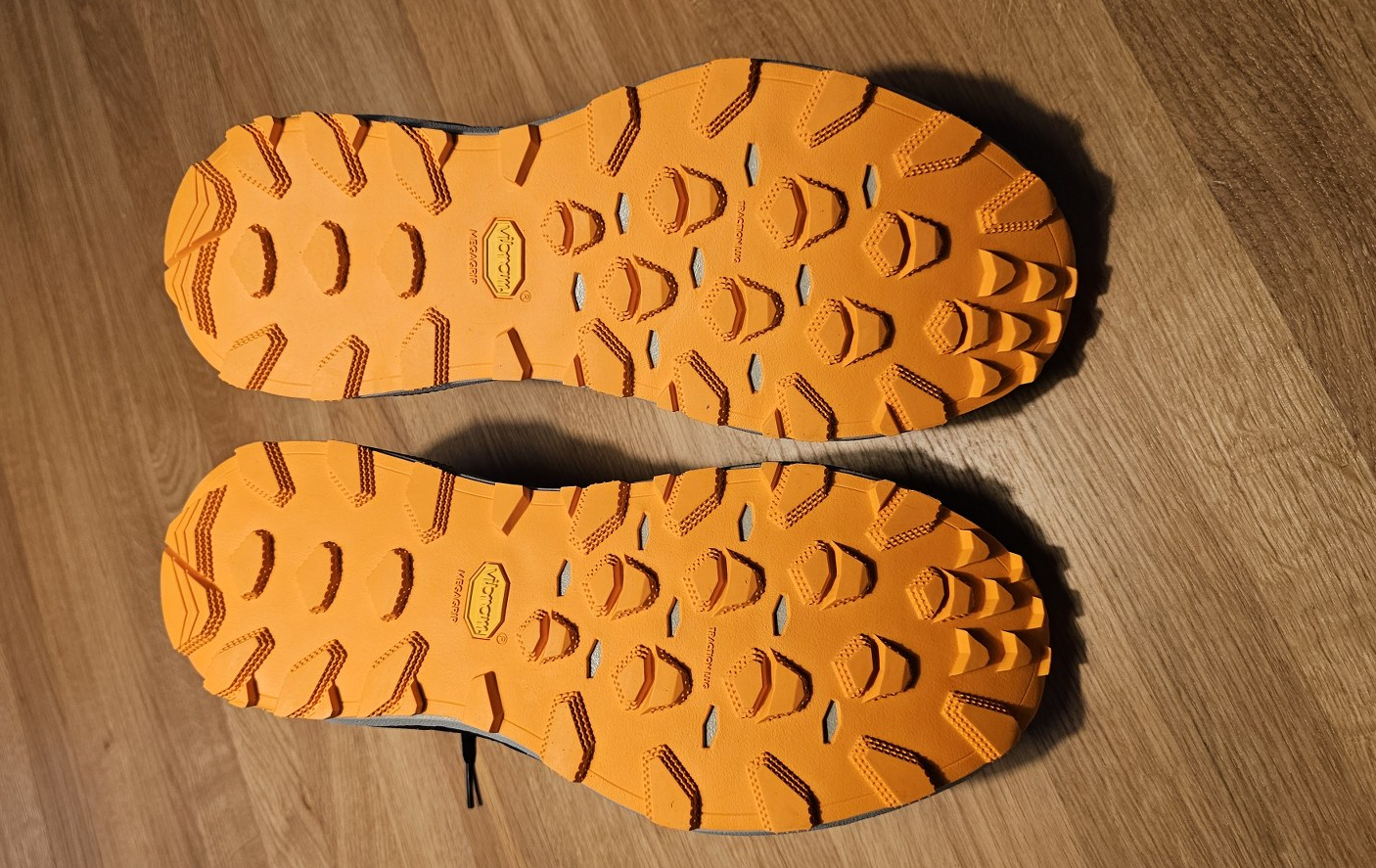 Po treningach w Mizuno odniosłem wrażenie, że Vibram Vibramowi nie jest równy i nie chodzi w tym momencie wyłącznie o przyczepność, lecz przede wszystkim o jego trwałość. Guma Vibram Megagrip od lat cieszy się niezwykłą reputacją w środowisku trailowym. Przyczepność na suchych, ubitych szlakach jest po prostu pewna. Kołki zapewniają doskonały kontakt z podłożem, a podczas dynamicznych skrętów czy gwałtownych przyspieszń but nie ślizga się. Na luźnych kamieniach, które są prawdziwym wyzwaniem dla każdego biegacza górskiego, Mujin 11 spisują się wzorowo. Guma doskonale przylega do powierzchni, a rozmieszczenie kołków zapewnia stabilność nawet na ostro zakończonych kamieniach. Wspinaczki po kamiennych zboczach czy przebieganie blokowisk, gdzie każdy krok wymaga precyzji, stają się zdecydowanie bezpieczniejsze. Mokre korzenie, które są prawdziwym koszmarem większości butów trailowych, również nie stanowią poważnego problemu. Oczywiście, nie można oczekiwać cudów i pewna ostrożność jest zawsze wskazana, ale Vibram Megagrip w Mizuno Wave Mujin 11 radzi sobie z nimi znacznie lepiej niż standardowe gumy. Przebiegałem kilkukrotnie odcinki gęsto usiane wilgotnymi korzeniami po deszczu i choć wymagało to koncentracji, but zapewniał wystarczającą przyczepność, by czuć się pewnie. Na błotnistych szlakach, szczególnie w głębokim, lepkim błocie, kołki mają tendencję do zapychania się, co jest nieuniknione przy tej długości rzeźby, ale mimo to przyczepność pozostaje na zadowalającym poziomie. Co jednak naprawdę zaskoczyło mnie najbardziej, to odporność gumy na ścieranie. Po przebiegnięciu 200 kilometrów terenu i asfaltu, na podeszwie nie widać praktycznie żadnego ubytku czy wytarcia gumy. To wyjątkowy wynik, ponieważ u innych producentów wyraźne oznaki zużycia można zauważyć już po pierwszych 50 kilometrach, zwłaszcza gdy część dystansu stanowi asfalt. Kołki zachowały swoją wysokość, krawędzie pozostały ostre. Jeśli ten trend się utrzyma, spodziewam się, że buty spokojnie przetrwają kilkaset kilometrów intensywnego użytkowania.