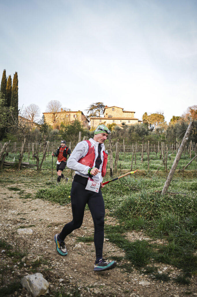 Ultra Trail Chianti Castles to bieg wyjątkowy pod wieloma względami. Edycja 2026 przyciągnęła ponad 4000 startujących na wszystkich dystansach, a królewski UTCC na 120 km był jednocześnie jednym z ostatnich biegów w cyklu Golden Ticket do Western States 100. Na starcie pojawiły się takie gwiazdy jak Courtney Dauwalter, która w ostatniej chwili przeniosła się z odwołanego Tenerife Bluetrail, czy Thomas Cardin z Francji. Dauwalter wygrała bieg kobiet w czasie 11 godzin i 31 minut, Cardin zamknął się poniżej dziesięciu godzin. Wielki sport na najwyższym poziomie. Ja startowałem w zupełnie innej lidze, w tej, w której celem jest meta, a nie podium. Nie każdy musi ścigać się z elitą, żeby przeżyć coś wielkiego.