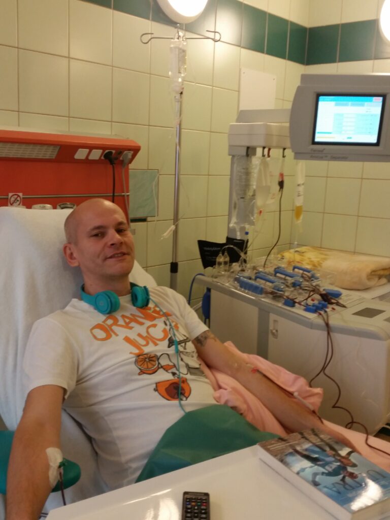 Leszek Winiarek: Niestety wciąż panuje wiele mitów dotyczących oddawania szpiku, a w rzeczywistości jest to prosta i bezpieczna procedura medyczna wykonywana w Polsce od ponad 40 lat, a na świece dłużej. Są dwie metody pobierania szpiku, a tak naprawdę komórek macierzystych: w 90% przypadków jest to pobranie komórek z krwi obwodowej. Procedura jest podobna trochę do pobrania krwi, z tą różnicą, że mamy wkłucia w oba przedramiona. Z jednej ręki krew jest pobierana, przechodzi przez specjalny separator komórek, a drugim wkłuciem wraca do naszego krwioobiegu. Cały proces trwa ok 4-5 godzin, w czasie których możemy oglądać TV, czytać książkę (ja akurat czytałem “Szczęśliwi biegają ultra”) czy słuchać muzyki pod opieką przemiłego personelu szpitala.